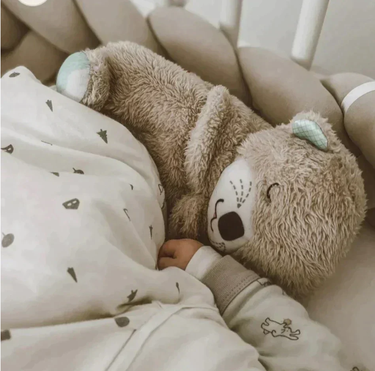 Het Rustgevende Slaapmaatje heeft een ingebouwde ademhalingssensor die een natuurlijke, rustgevende ademhalingspatroon nabootst. Dit helpt je baby of peuter om zich veilig en geborgen te voelen, net als wanneer ze tegen je aan liggen. Het zachte ritme bevordert ontspanning en kalmeert het zenuwstelsel.