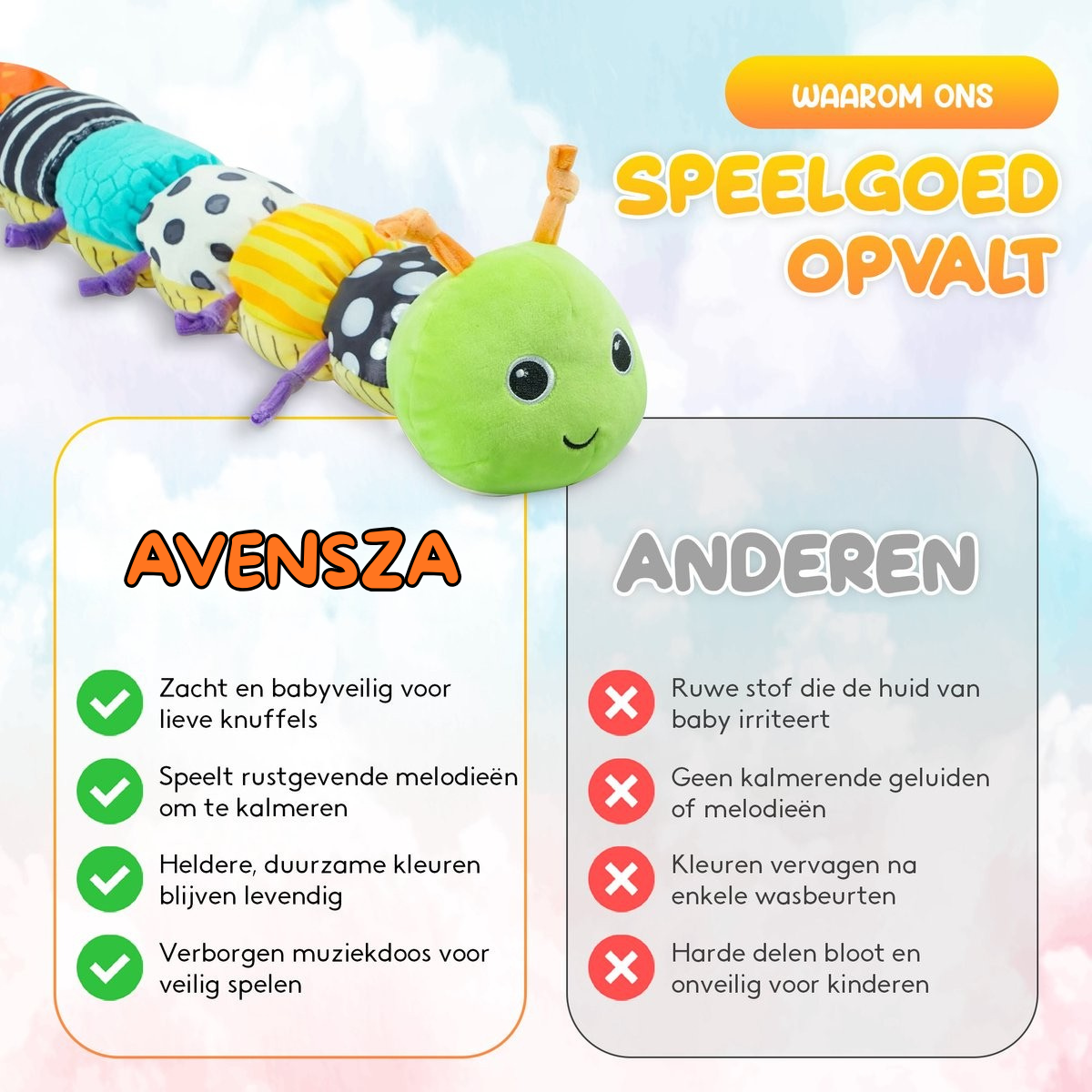 - ✓ Het de ontwikkeling van tast-, zicht- en gehoorzin ondersteunt
