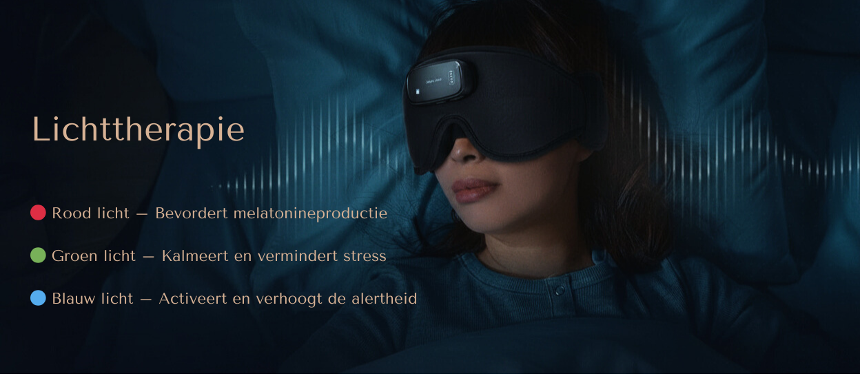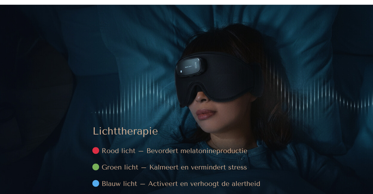 Het masker gebruikt rode en blauwe LED-lichttherapie die wetenschappelijk bewezen is om de melatonineproductie te stimuleren. Rood licht helpt je lichaam te ontspannen en bereidt je voor op slaap, terwijl blauw licht je slaap-waakritme kan reguleren wanneer gebruikt op het juiste moment van de dag.