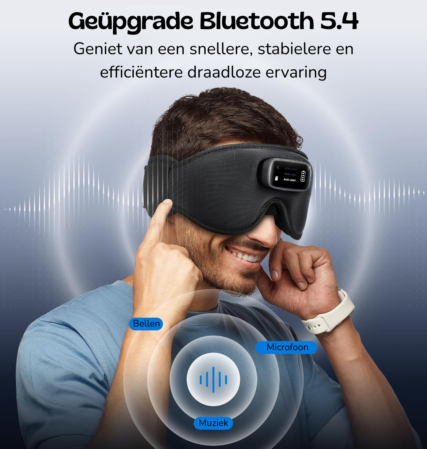 Ja, via Bluetooth kun je het masker verbinden met je smartphone en je eigen muziek, podcasts of meditatie-apps afspelen. De ingebouwde speakers zijn speciaal afgestemd voor comfortabel luisteren tijdens het slapen.